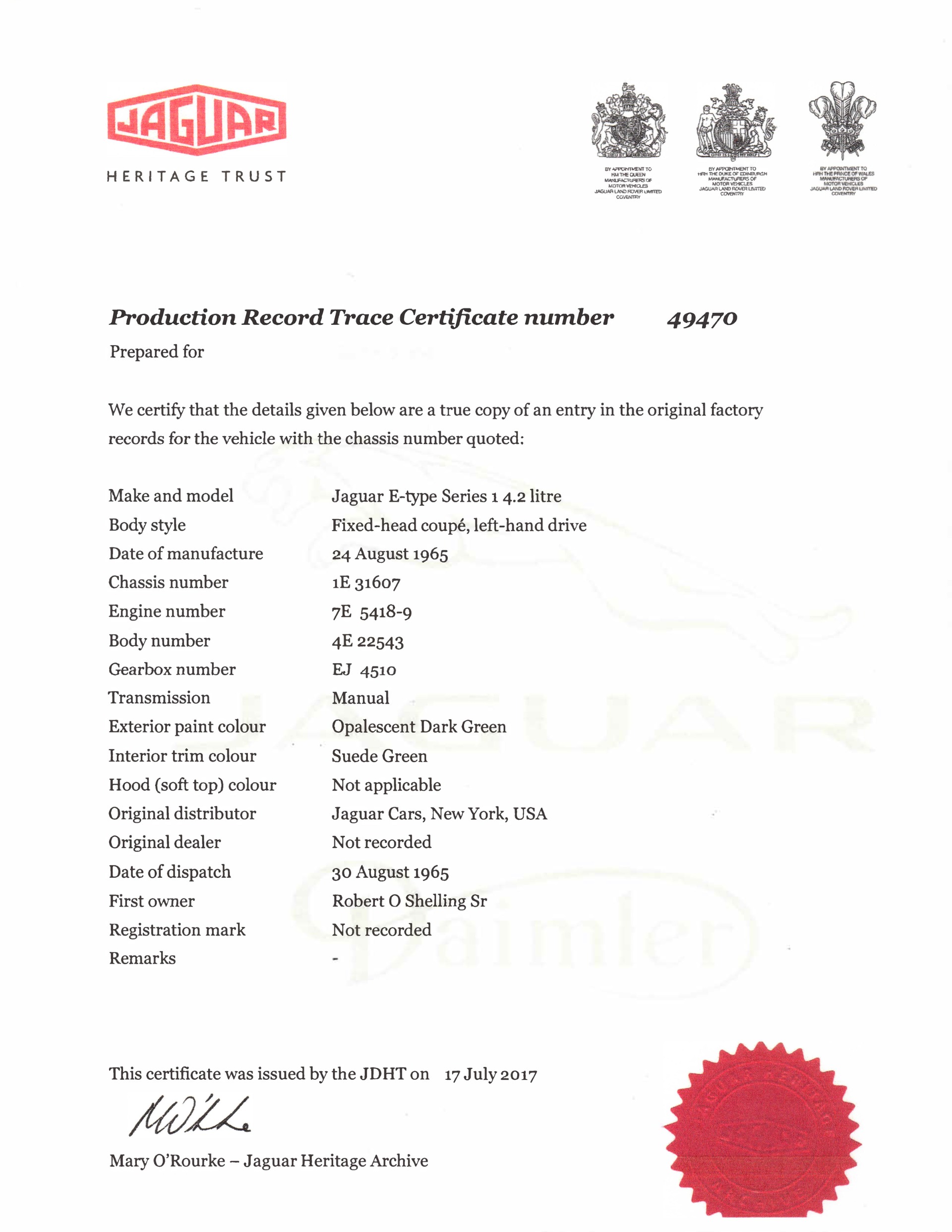 | VIN: | 1E31607 |